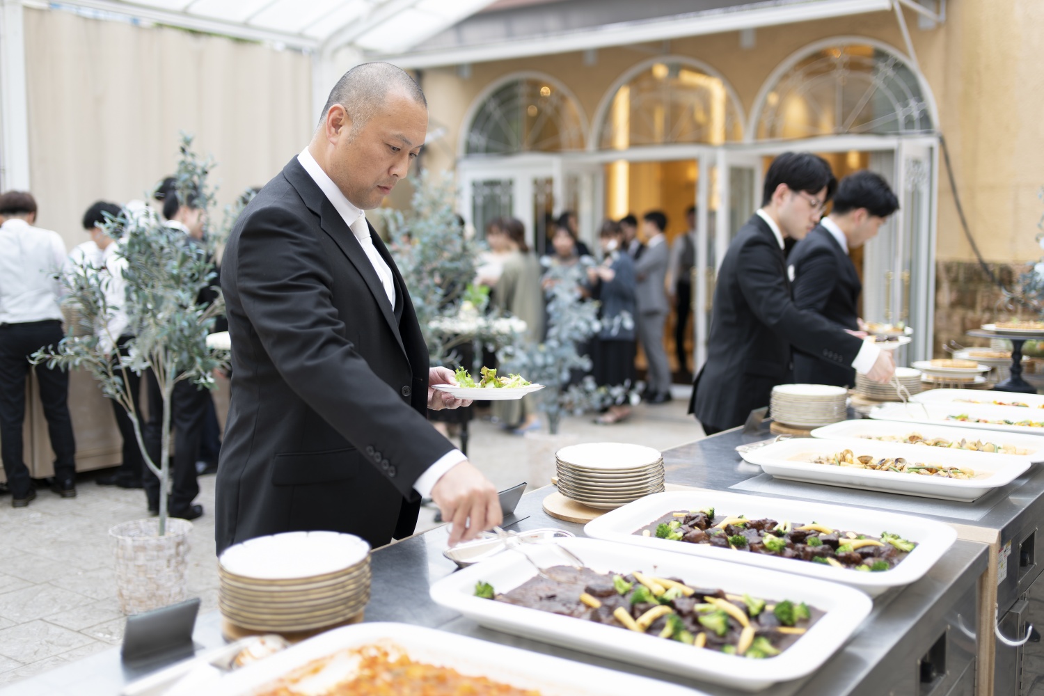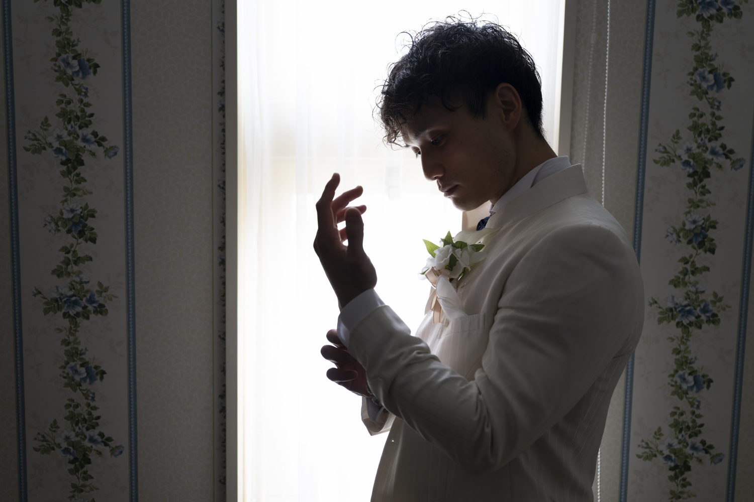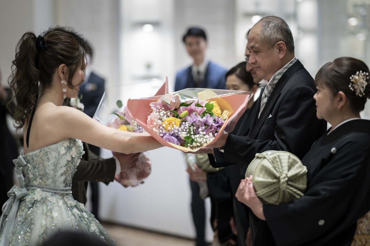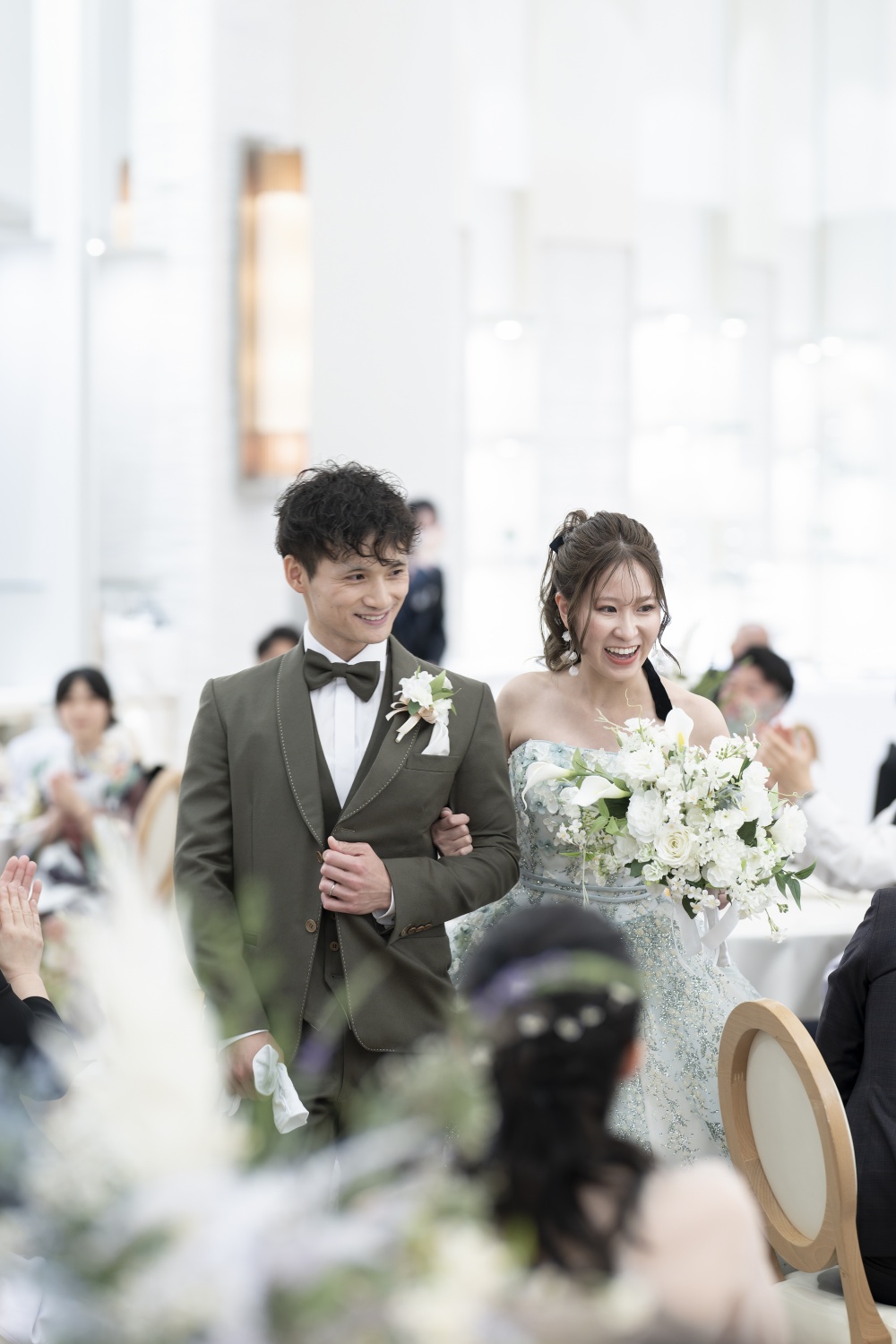 「ご結婚式当日まで選んだ衣裳は内緒にされたい」と新婦様のご希望でファーストミートを行いました。思わず涙があふれる新婦様を見て新郎様も涙されていました。